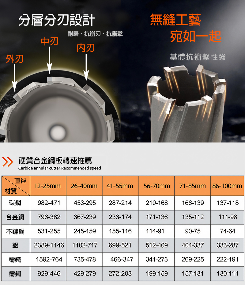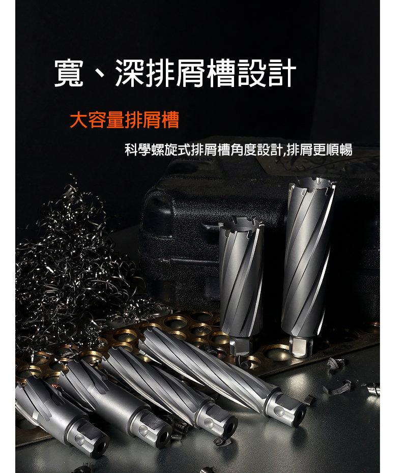1.適用於鋼結構、橋樑工程、造船業、鑽油台、鐵路建設、機械製造、電力等領域 2.當加工深孔或大孔等切削量比較大時,刀體上纏繞的鐵屑很多,會影響排屑, 堵屑會導致崩刀等情況,需要用長柄鐵勾把鐵屑及時勾除。 3.因材料的碳化鎢分佈不均勻或加工等其他原因,在鑽孔過程 可能會出現排屑不順暢等情況,請立即停止下刀,用啄鑽的方式以及以上幾點處理