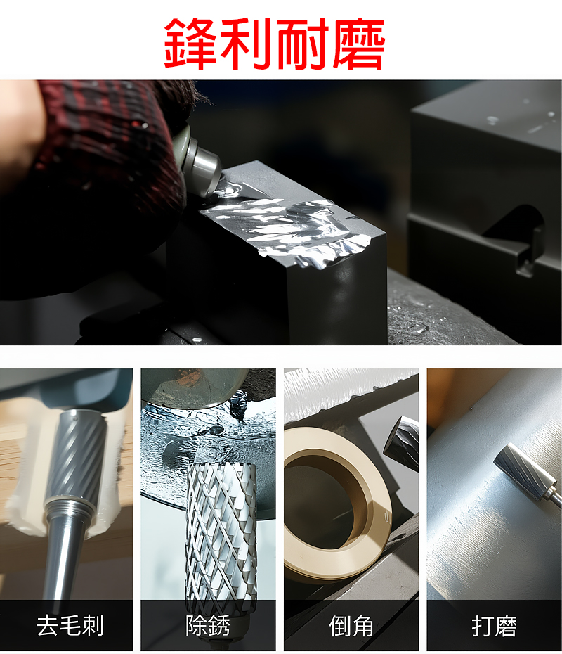 1.用途:鎢鋼滾磨刀用途廣泛,應用於模具加工製造,機械零件的倒角,倒圓和溝槽加工, 清理鑄、鍛、焊件的毛邊和焊縫管道的修整加工,金屬和非金屬材料(骨、玉、石)的工藝美術雕刻 2.使用:鎢鋼滾磨刀主要在電動工具或氣動工具使用(也可裝在機床上) 3.轉速一般為6000-50000轉/分