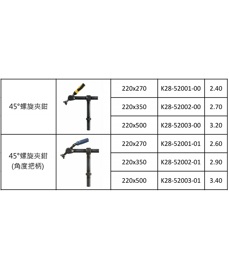 45°螺旋夾鉗(K28系統)